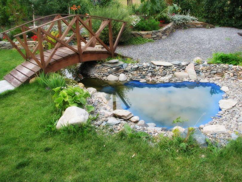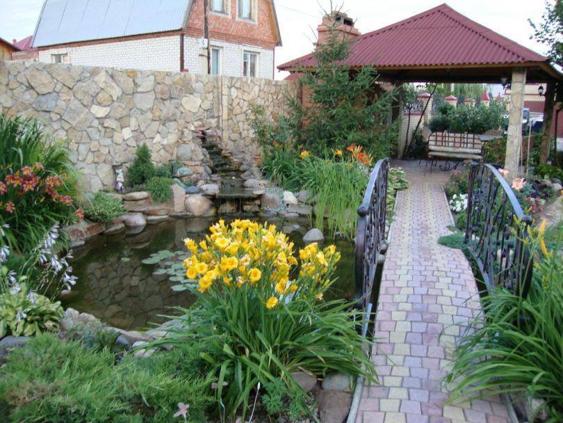 Ещё один способ зонирования – использование искусственных сооружений. Это могут быть альпийские горки, искусственные водоёмы, мостики. Прекрасно справляются с этой задачей и мини–реки, а также ручейки. Для зонирования можно использовать и крупные камни.