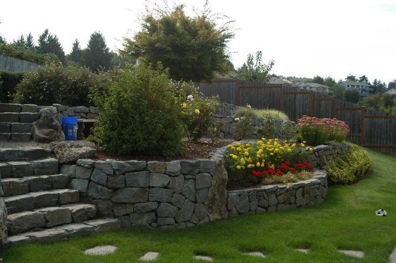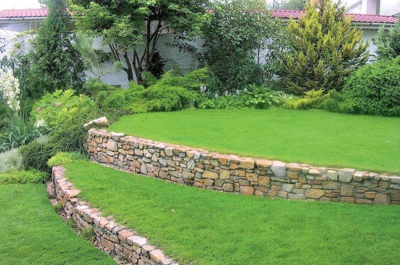 В дизайне дачного участка с уклоном требуется особенная планировка. Лучше всего, если профессиональные архитекторы его скомпенсируют с помощью многоуровневых грядок и каменных подборок (например, высоких клумб из габионов или каменного забора)