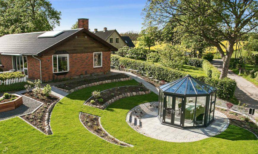 Если значение имеет цена, то стоит выбрать вариант из поликарбоната. Подобное строение располагают в глубине сада, чтобы было поменьше шума. Пользуется популярностью дизайн двора частного дома с беседкой, так как при этом можно получить еще одно удобное место для отдыха.