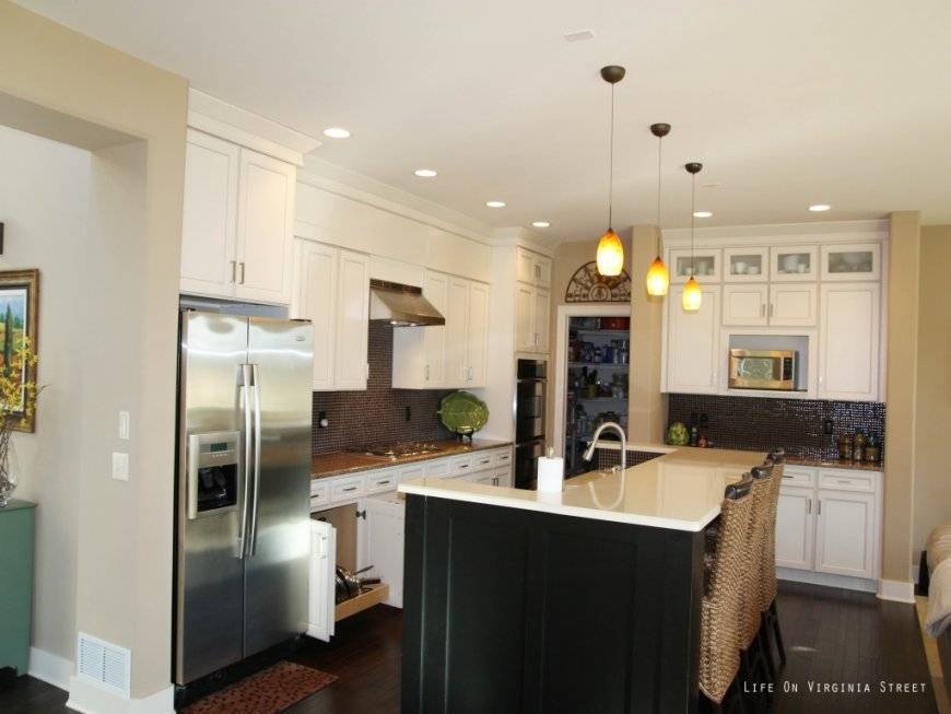 Если между кухней и кладовкой расположены стеклянные дверцы, — света потребуется меньше (вы частично используете свет на кухне и естественный свет днем). Если потолки высокие, — на верхние полки, возможно, необходимо установить более мощные лампы.