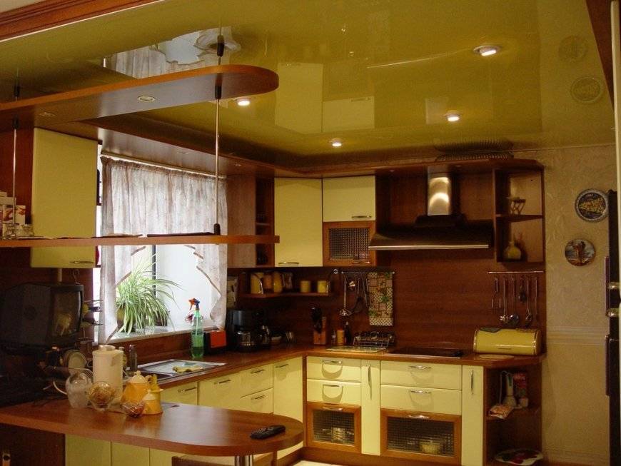 - Вы неограниченны в цветовом выборе, что делает такие потолки еще более привлекательными. Они впишутся в любой интерьер. Существует даже фотопечать, что поможет сделать дизайн натяжных потолков на кухне эксклюзивным и непохожим на другие;