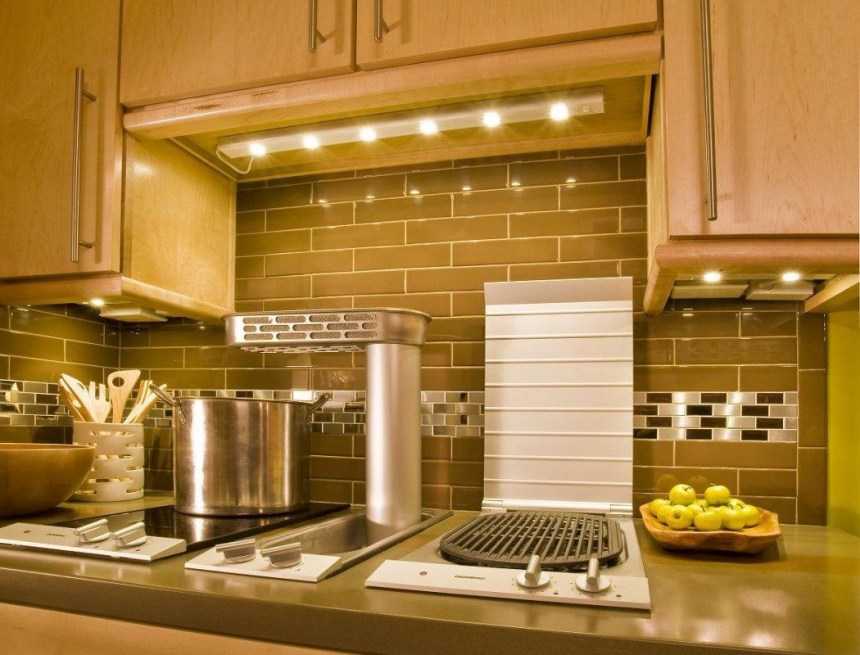 Еще один вариант света для удобной готовки. Лампы в вытяжках не потребляют много энергии, но они достаточно мощные, чтобы осветить и плиту, и небольшое пространство вокруг нее.