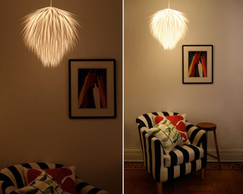 В результате получается плафон, напоминающий шишку. Выглядит это действительно очень интересно.