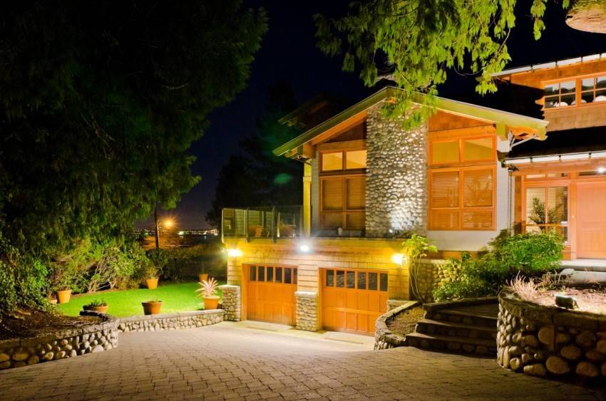 - настенные фонари или возле ворот или калитки, чаще «под старину»;