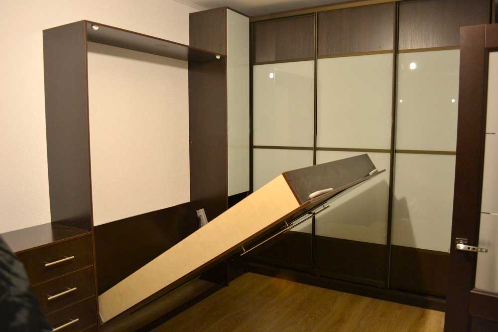 Производителями мебели предлагается множество интересных и функциональных решений. В однокомнатных квартирах зачастую просто не обойтись без установки спального места, убирающегося в шкаф.