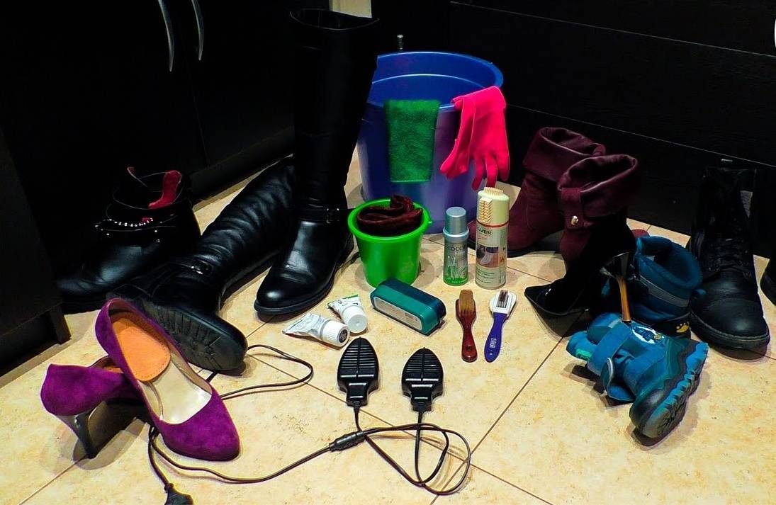 - Изначально следует собрать всю обувь, вымыть ее, очистить от грязи, просушить.