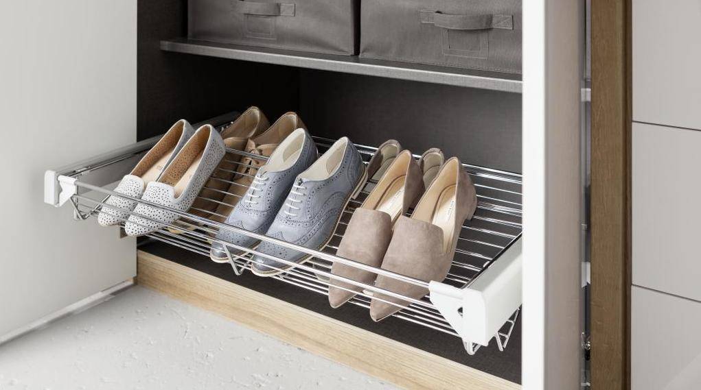 - с выдвижными ящиками. Идеальный вариант для балеток, кроссовок, туфель без каблуков. Удобно искать, доставать нужную пару.