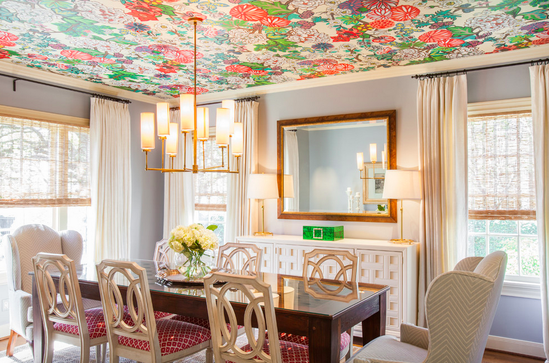 Отделка потолка обоями подойдет абсолютно к любому интерьеру