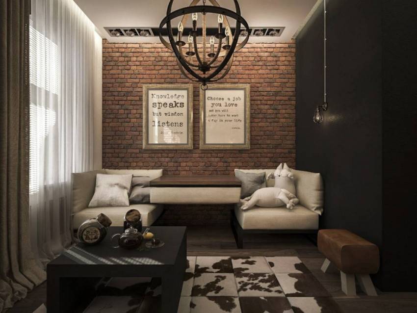 Декор стен кирпичом считается стильным решением. Эти детали используют в современных направлениях дизайна. Например, интерьер гостиной хай-тек требует наличия необычных фактур и элементов. В дизайне используют множество блестящих панелей.