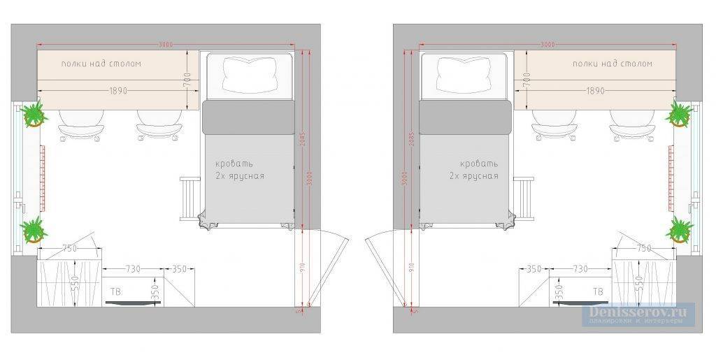 Бесспорный плюс планировки 3 на 3 (или даже 2,8 на 3,3 метра) – это правильная, почти квадратная форма. Варианты расстановки мебели при такой площади можно посмотреть в фотоподборке ниже.