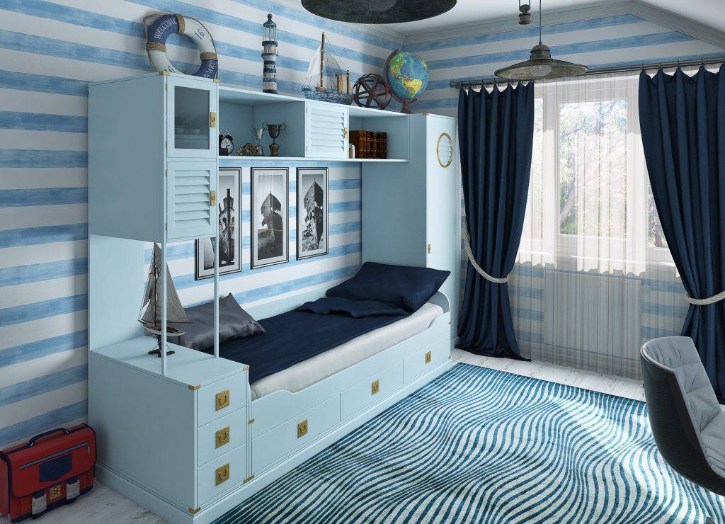В морской тематике идеально сочетаются синие, голубые и белые оттенки