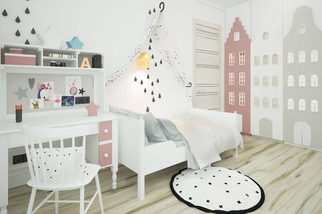 Позаботьтесь о безопасности. Она должна проявляться во всем: от материалов отделки до формы мебели. Все они должны соответствовать стандартам экологичности. Хрупкий состав, острые углы, наличие антистатических свойств — всего этого не должно быть в детской. Также не стоит делать замок изнутри комнаты, чтобы ребенок не смог запереться в ней. Вся электропроводка должна быть спрятана в стене или под полом, а розетки — быть закрытыми шторками или специальными заглушками.