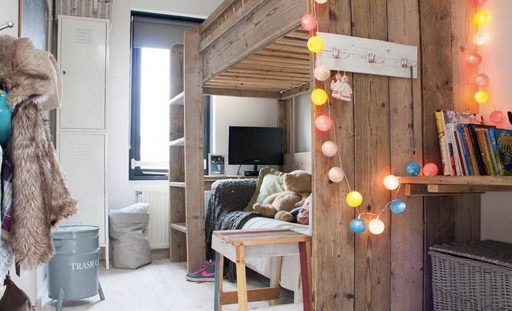 Для экономии свободного пространства рабочую зону можно обустроить под кроватью-чердаком. Однако не забудьте позаботиться о достаточном освещении: рабочее место не должно стать причиной ухудшения зрения ребенка.