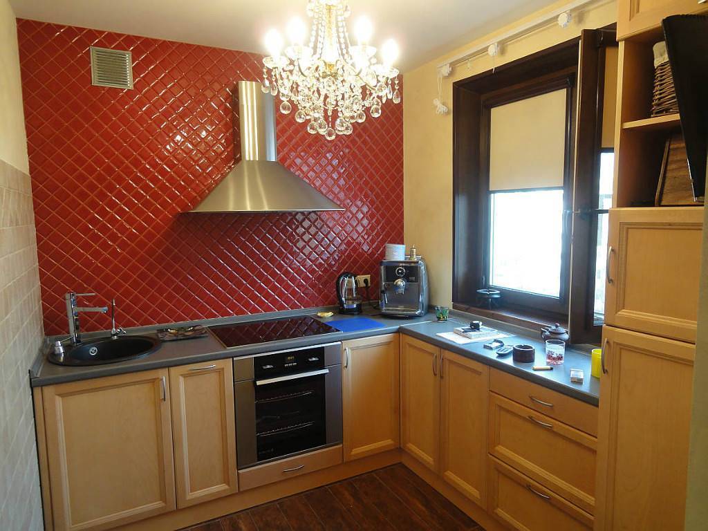 Отличное решение – фартук до потолка, это смотрится стильно и делает небольшую кухню объемнее.