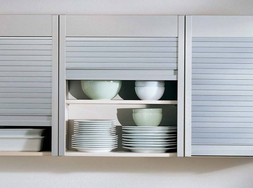 Чтобы увеличить «полезную» площадь шкафчиков, лучше всего выбирать высокие гарнитуры, упирающиеся в потолок.