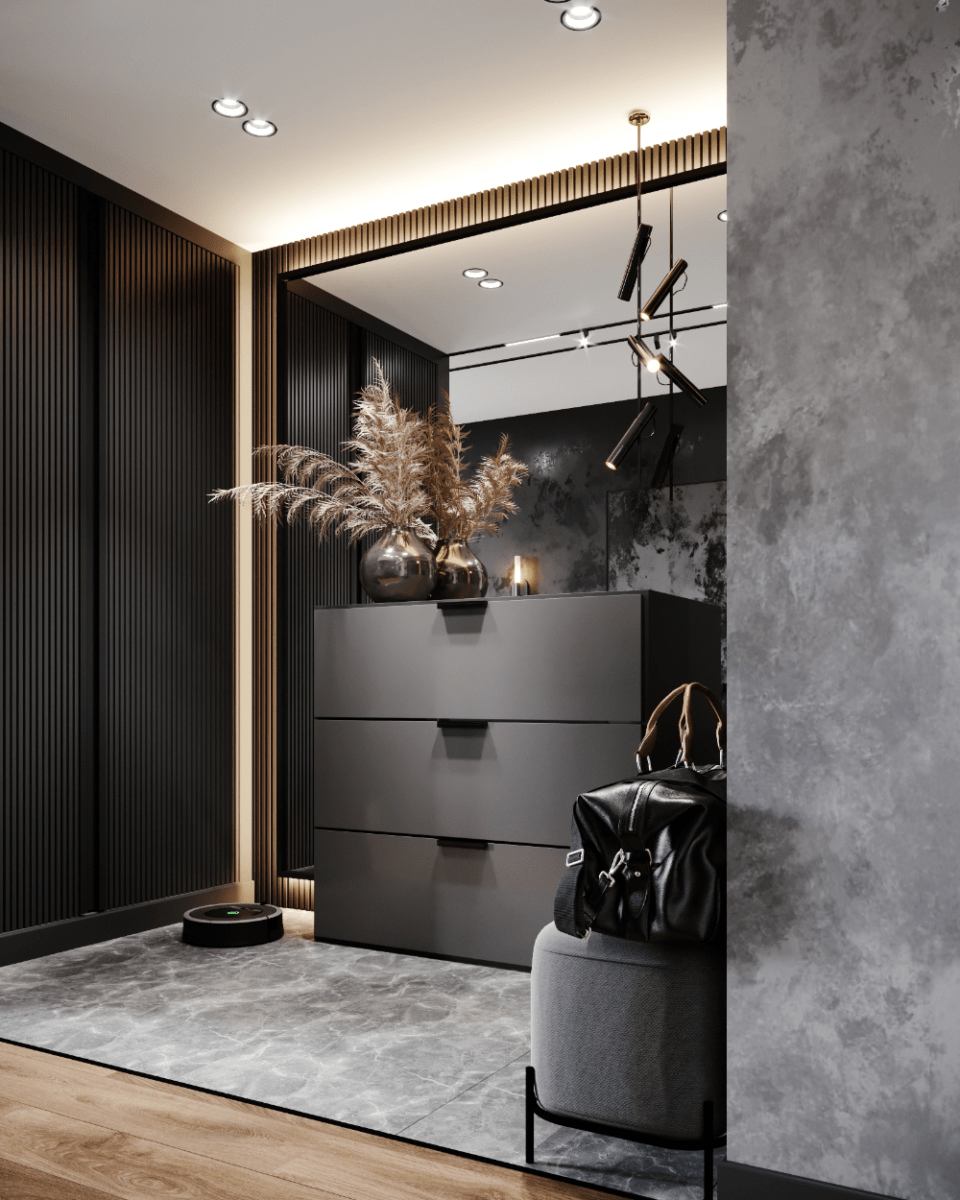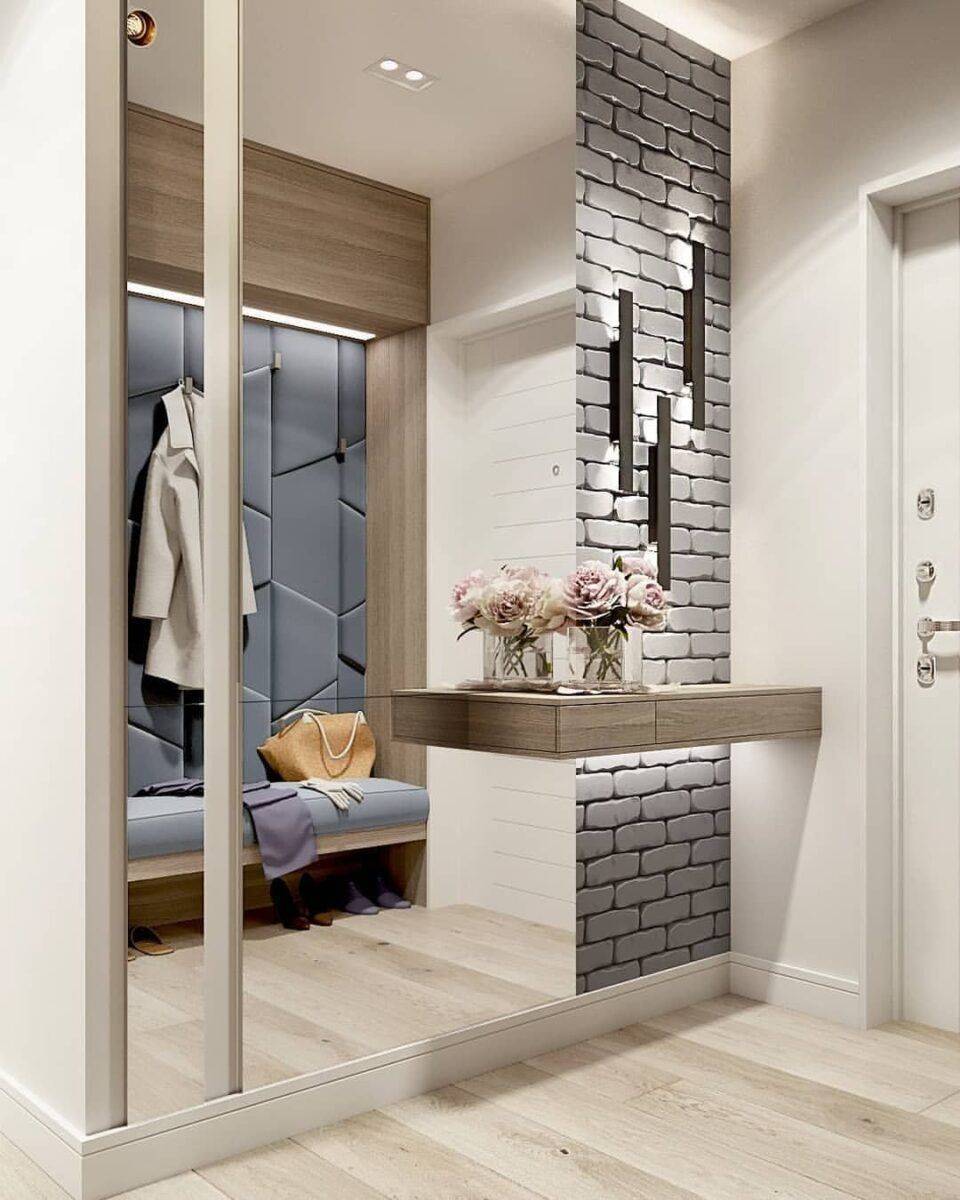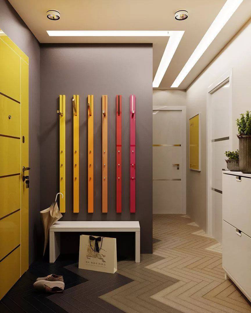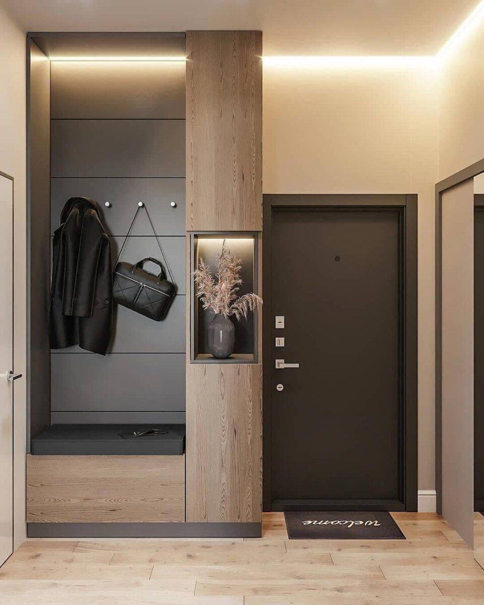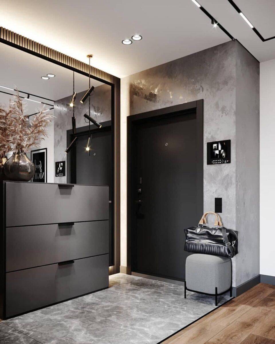 Конечно, это не значит, что вы не можете позволить себе присутствие темных оттенков ни при каких обстоятельствах. Однако давайте будем очень осторожны в этом отношении. Слишком много темных цветов вместо интересного эффекта может создать противоположный эффект. Интересное вдохновение — использование в прихожей разные контрасты, но с большим преобладанием более светлых оттенков.