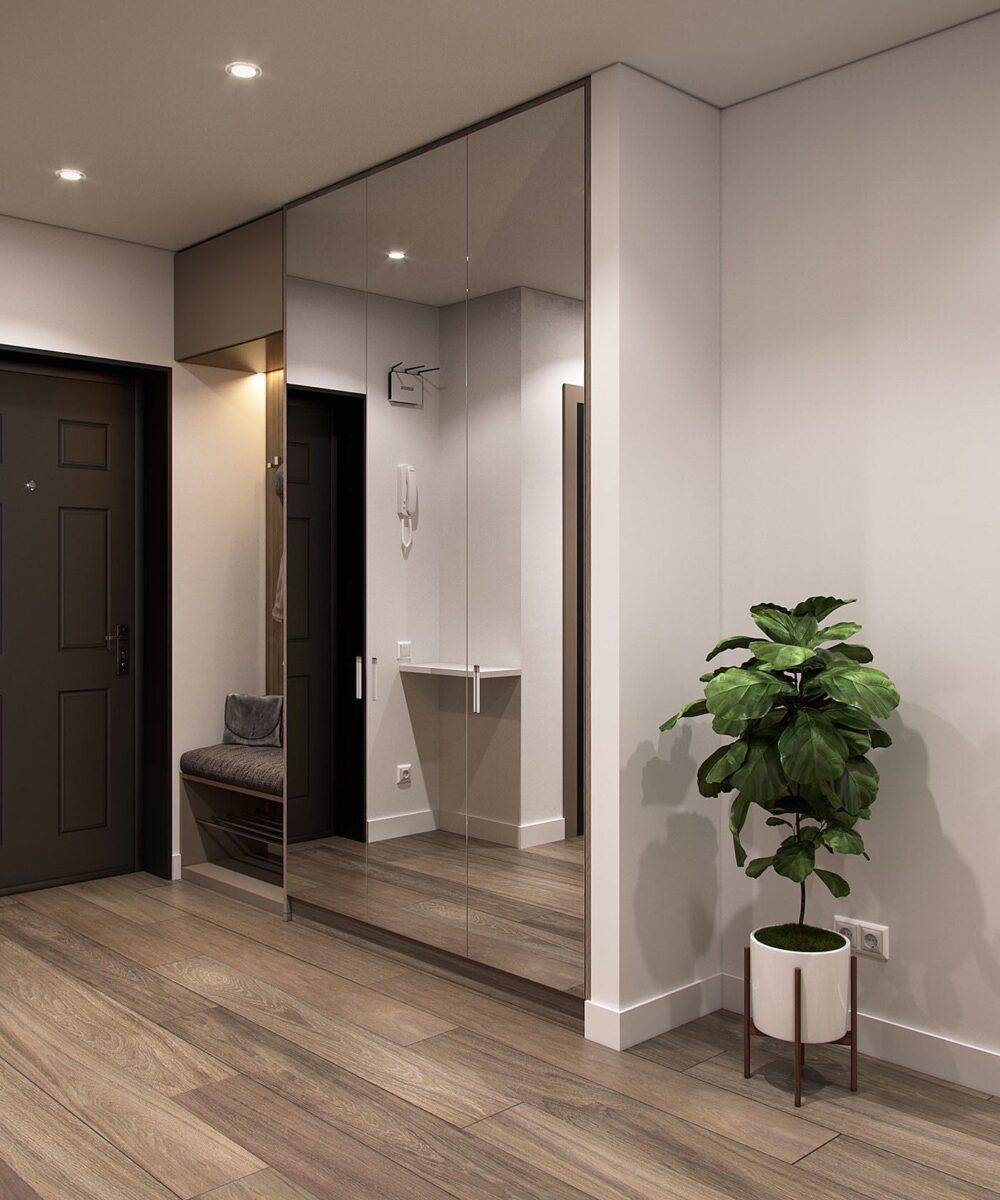 В этом случае прихожая получится просторнее и светлее. Помните, что главный принцип при обустройстве небольшой прихожей – минимализм.