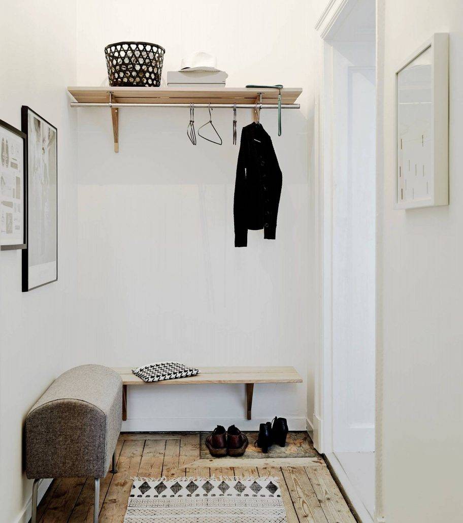 Если есть место, можно поставить вешалку стойку или повесить настенную вешалку в маленькую прихожую — для ежедневной верхней одежды. Так намного удобнее, чем каждый раз вешать ее в шкаф, да и влажную в общую кучу не повесишь, а на открытой вешалке она подсохнет быстрее и безопаснее.