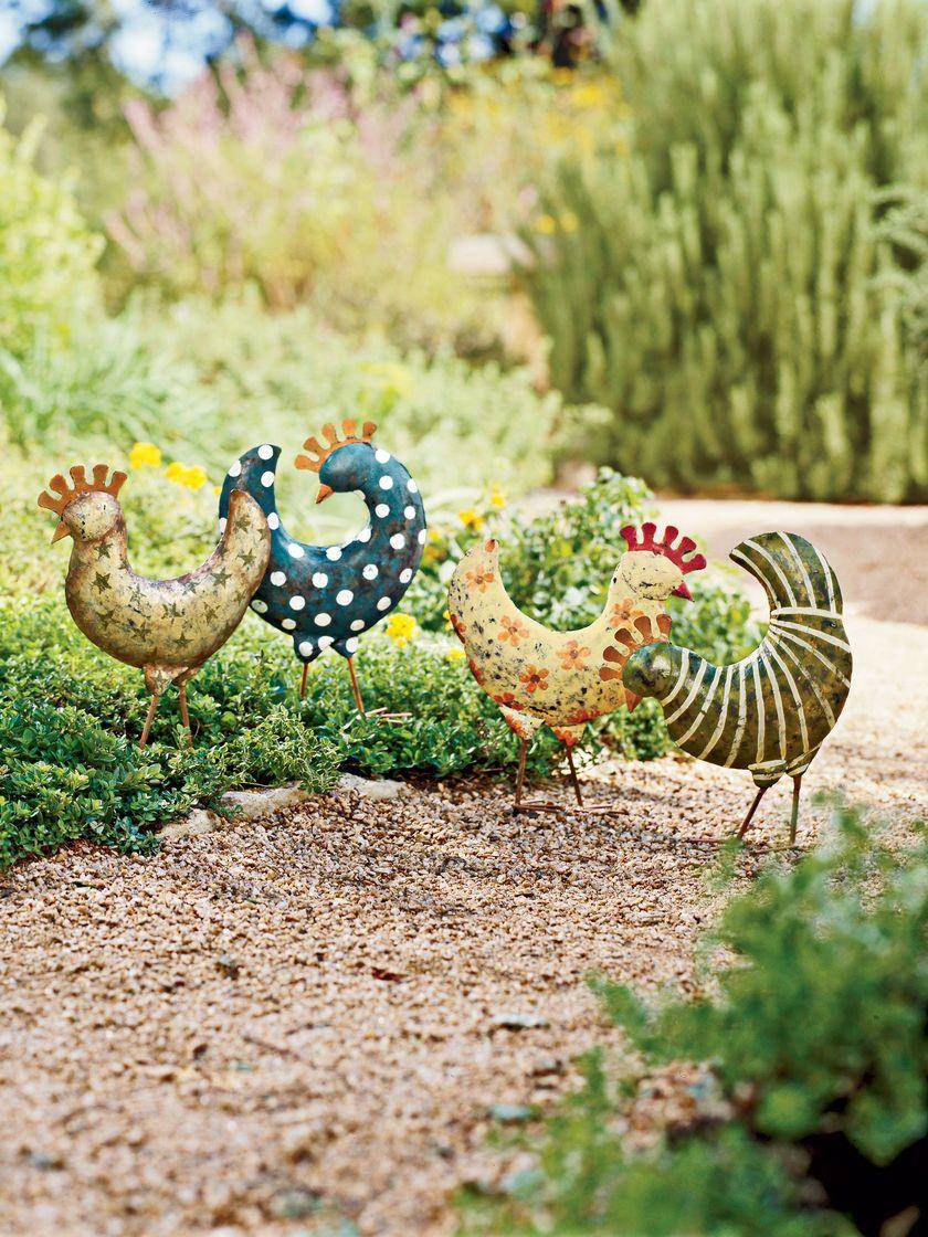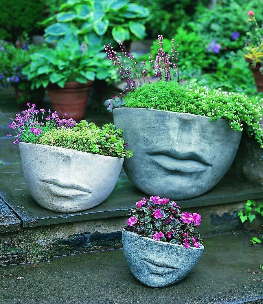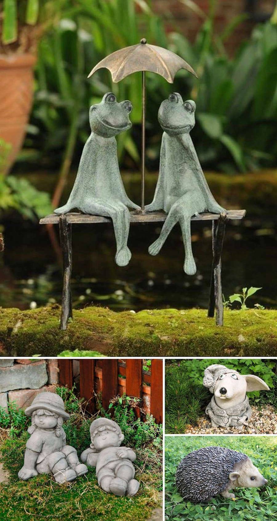 Интересный акцент привносят яркие и самобытные садовые скульптуры, которые можно изготовить самостоятельно. Используют различный материал.