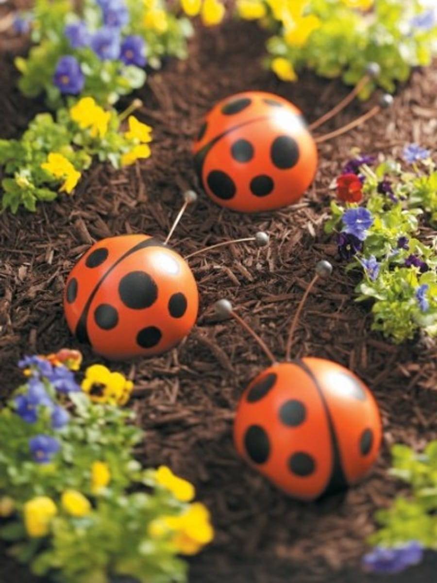 - поделки из камней в виде кактуса, детских кед, божьих коровок окрашенных флуоресцентной краской;
