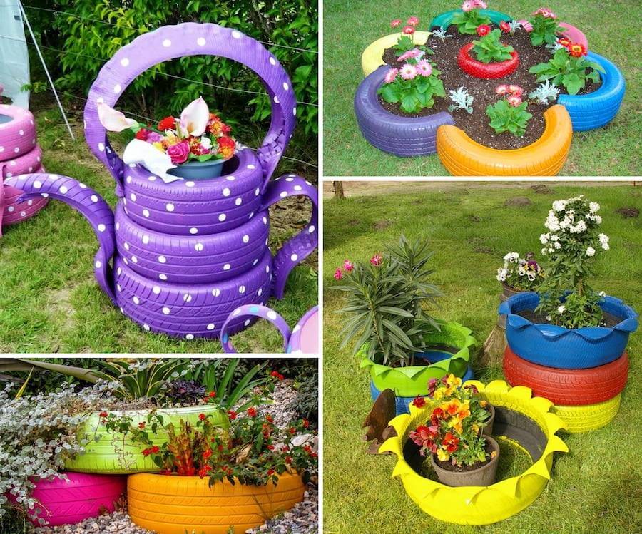 Вариантов применения автомобильных покрышек существует множество, поэтому стоит запастись этим материалом, чтобы преобразовать дачный участок в определенном стиле и цветовом решении.