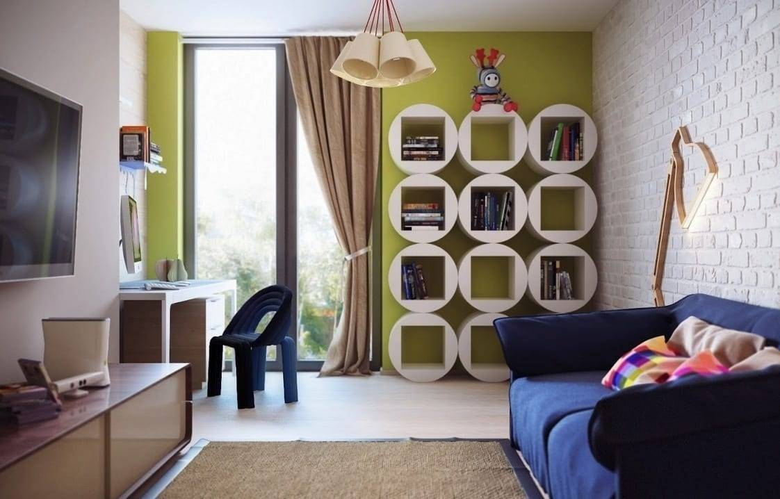 - Привычную корпусную мебель желательно заменить небольшой стенкой горкой и функциональным диваном-книжкой около стены – это позволит освободить пространство в центре помещения.