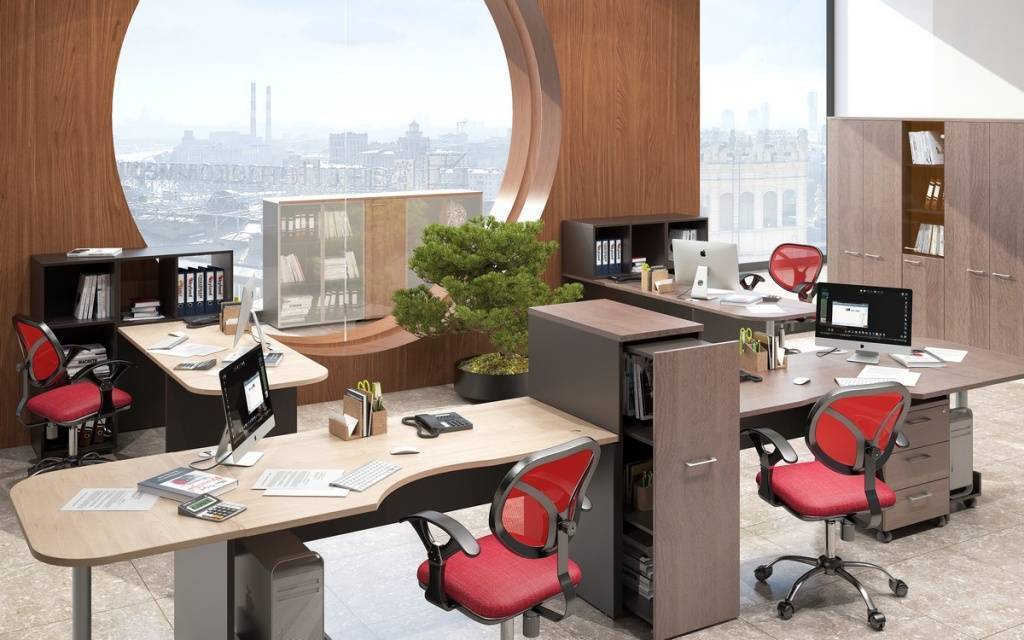 При отсутствии достаточного количества места, работникам будет не комфортно, что поспособствует снижению производительности. Желательно использовать угловые варианты мебели или применять элементы для зонирования.