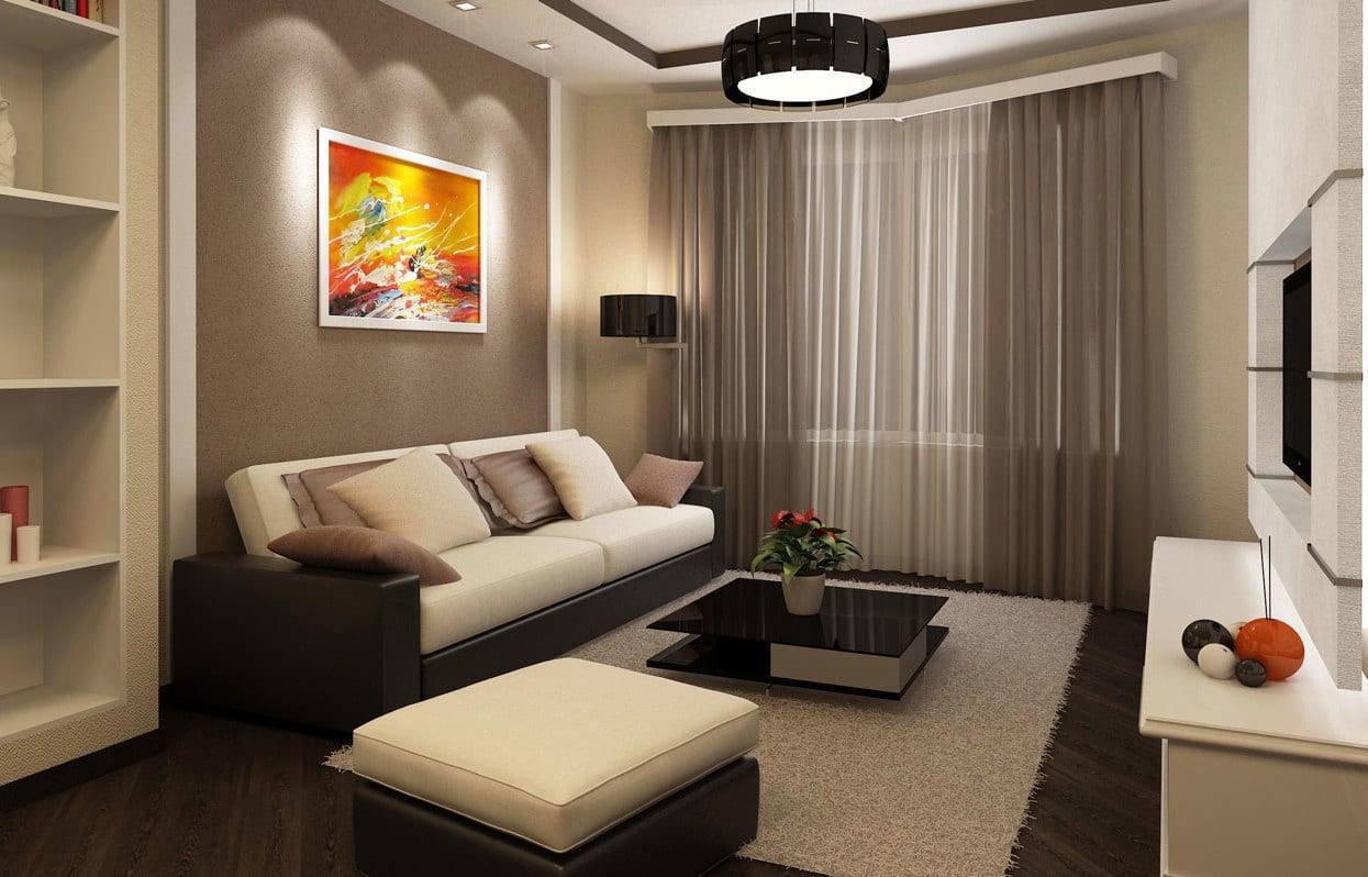 В маленьких гостиных предпочтительно расставлять мебель вдоль стен. Так она не будет преграждать проход. Если поместится, можно поставить перед диваном небольшой журнальный столик. Главное – помнить, что переизбыток мебели смотрится некрасиво. Лучше придерживаться минимализма.
