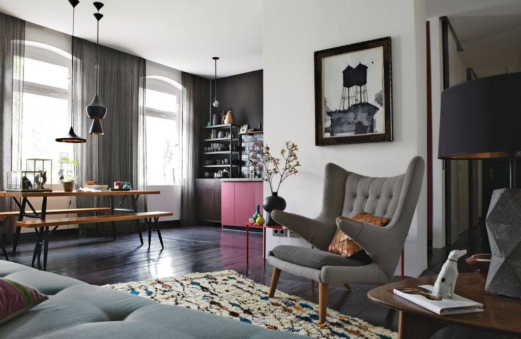 Также можно попробовать сочетание разных стилистических направлений. Например, зону, отделенную под рабочее пространство оформите в классическом стиле, а кухонное пространство и гостиную – в современном. Вы можете также использовать разные цвета – для зоны отдыха более светлые, например, пастельные, а для игрового пространства – яркие акценты.