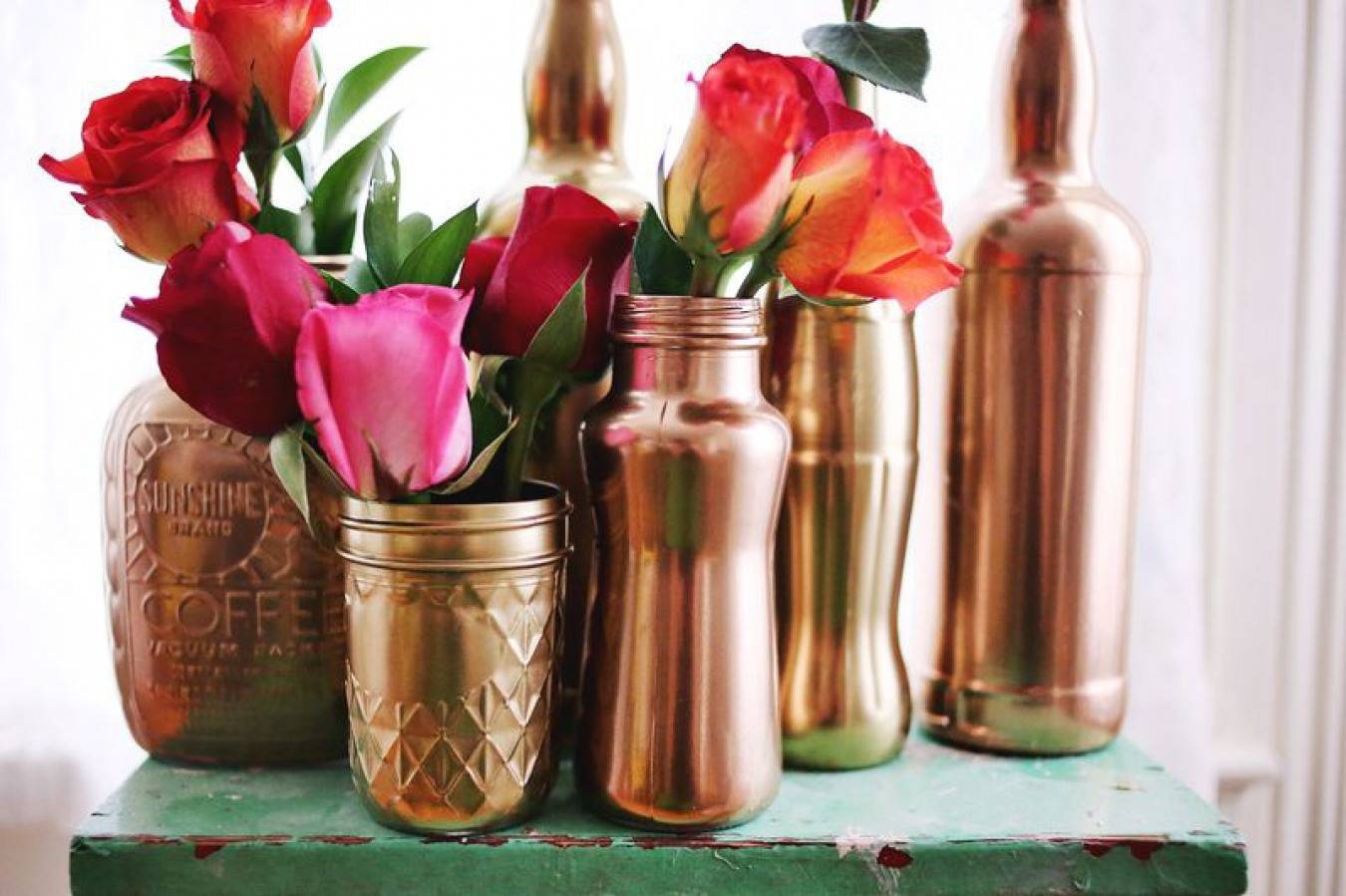 Использование красок может кардинально преобразить незамысловатые на первый взгляд стеклянные баночки и превратить их в изящную и красивую вазочку для цветов.
