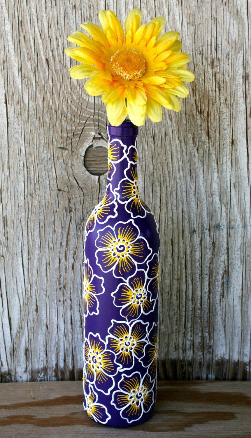 Можно нанести сверху на вазу клеевой рисунок, пользуясь специальным клеем, который при высыхании оставит на поверхности небольшой рельеф. Это могут быть обычные точки либо соты или все, на что хватает фантазии мастера.