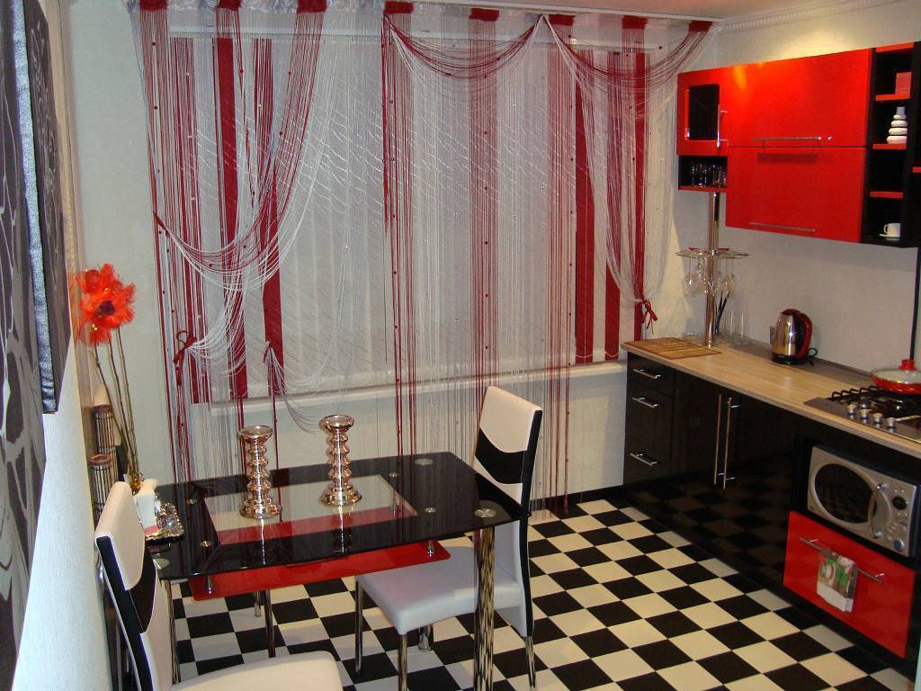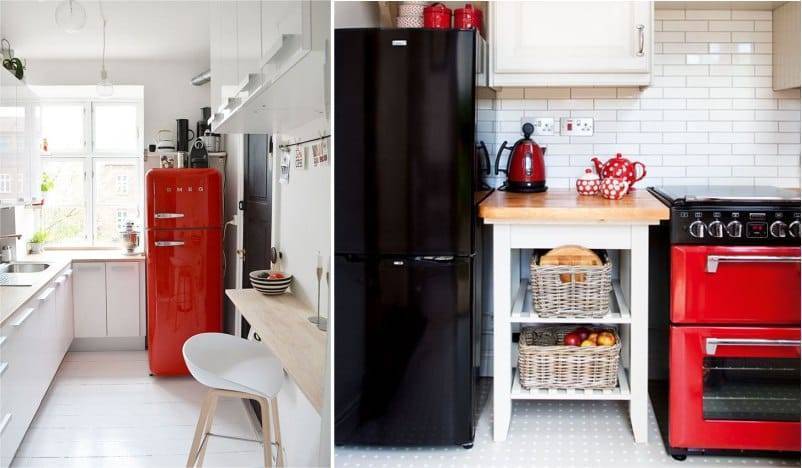 Варианты комбинаций красного и белого в интерьере кухни