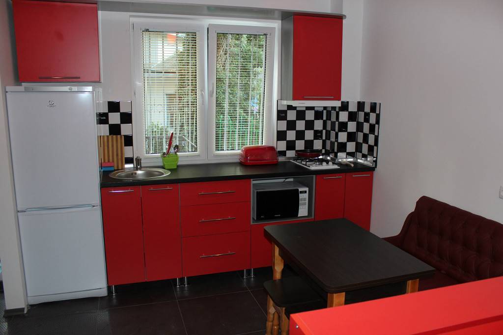 Белые стены — красный гарнитур