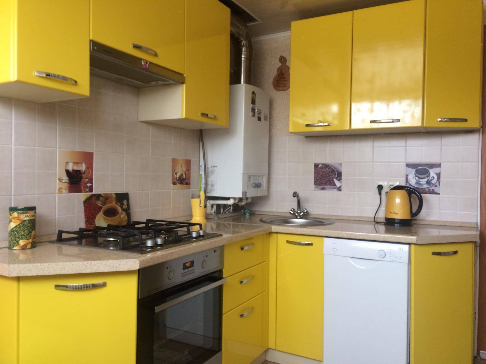 Интерьер маленькой кухни с яркими акцентами