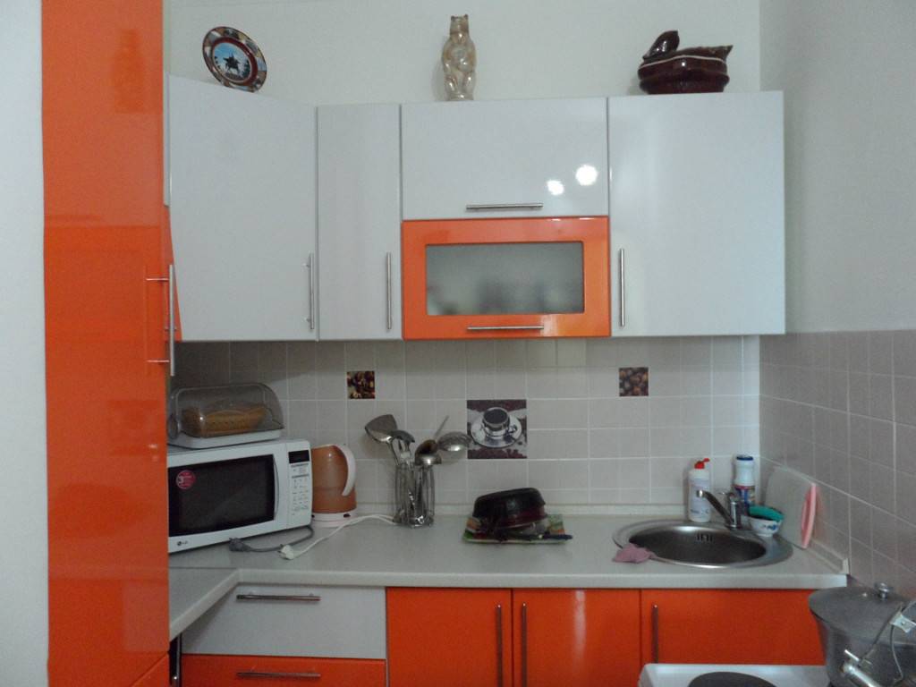 Кухня небольших размеров тоже может быть достаточно яркой. Используемые яркие оттенки не должны быть слишком темными, следует отдавать предпочтение зеленому, оранжевому, красному, желтому, голубому.