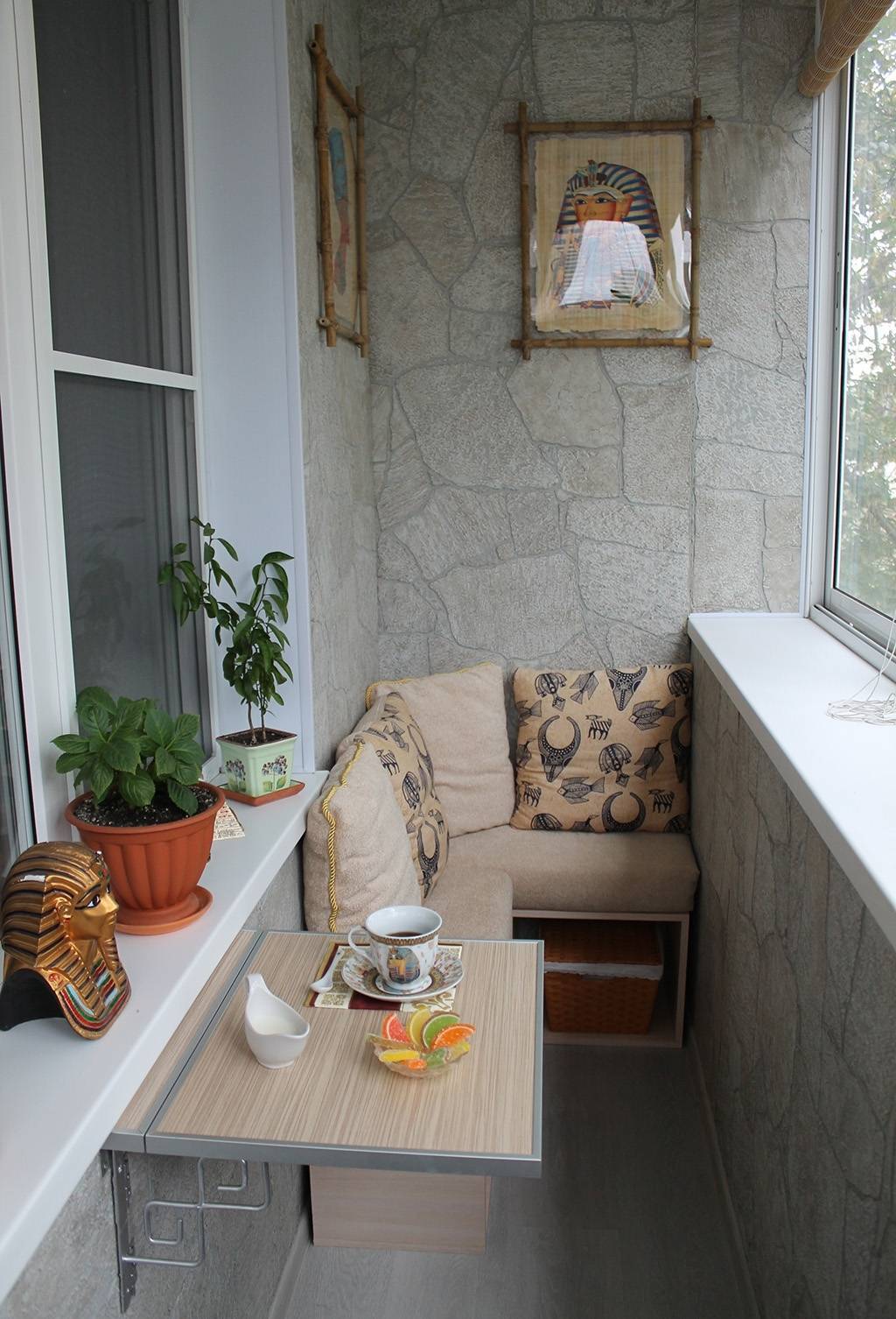 Также такой вариант можно совместить, если балкон был отведен в качестве гостиной. В данном случае можно оставить мини-софу или мебельный угол, чтобы проводить время за приемом пищи всей семьей.