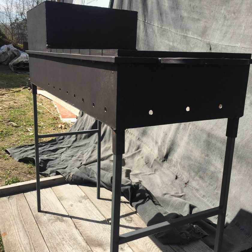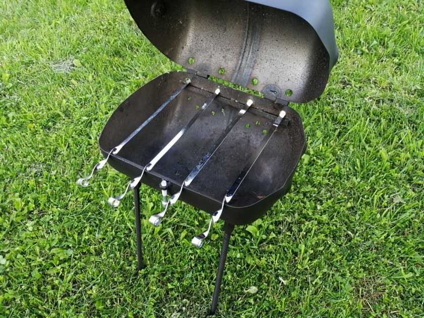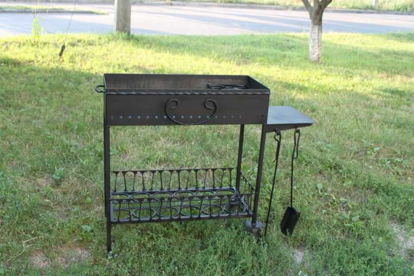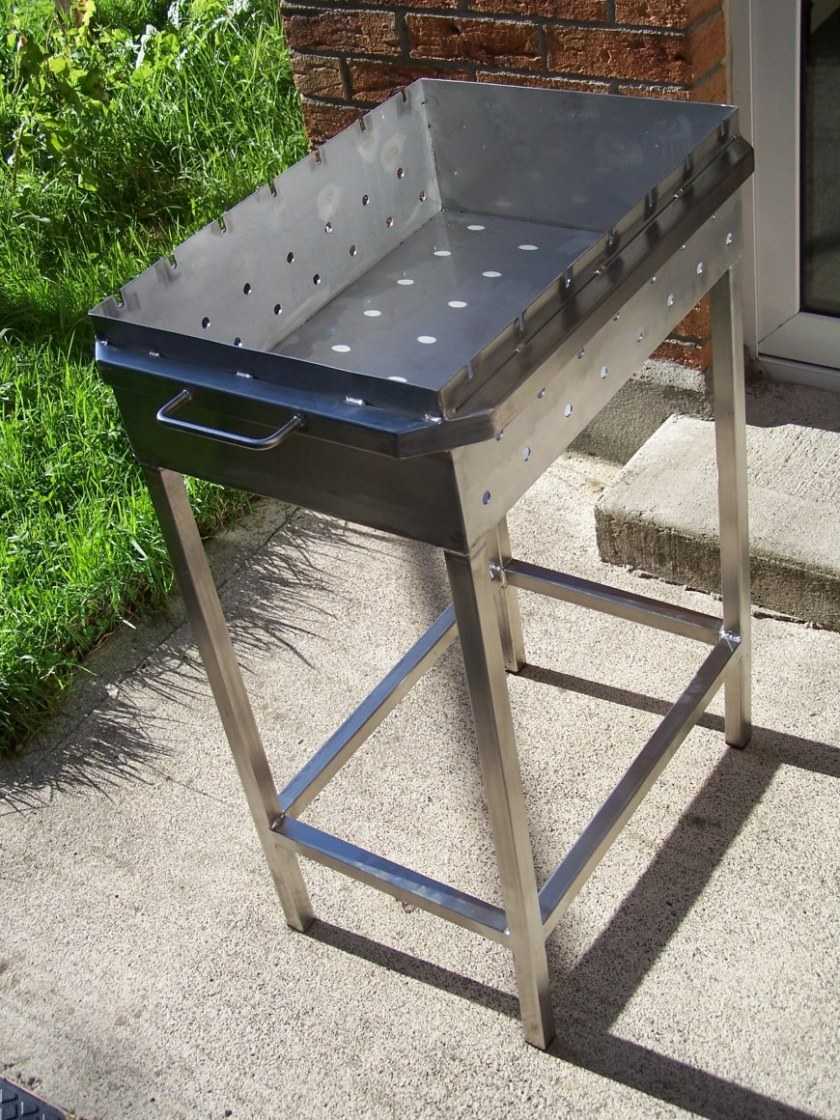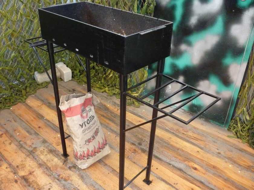 Подобная вещь будет почти по пояс мужчине, взявшемуся за приготовление мяса, и принесет только положительные эмоции от процесса. Для разборных конструкций лучше всего подойдут 20-30 см ножки, они сделают модель компактной и легко перевозимой в автомобиле или в небольшой сумке.