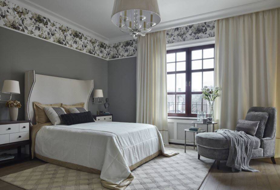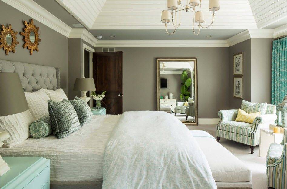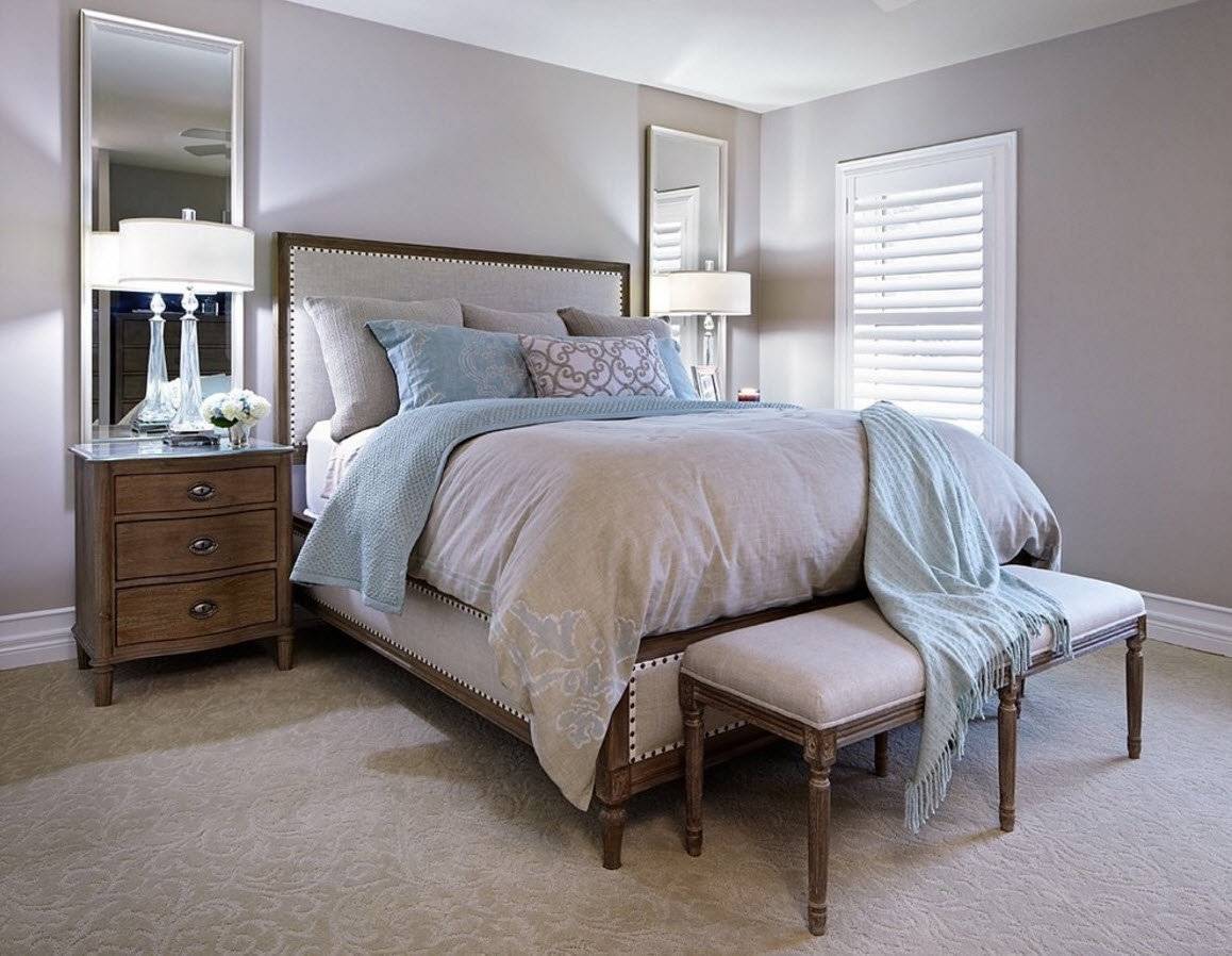 Серый и бежевый оттенки в спальне в классическом стилеИсточник house-biz.ru