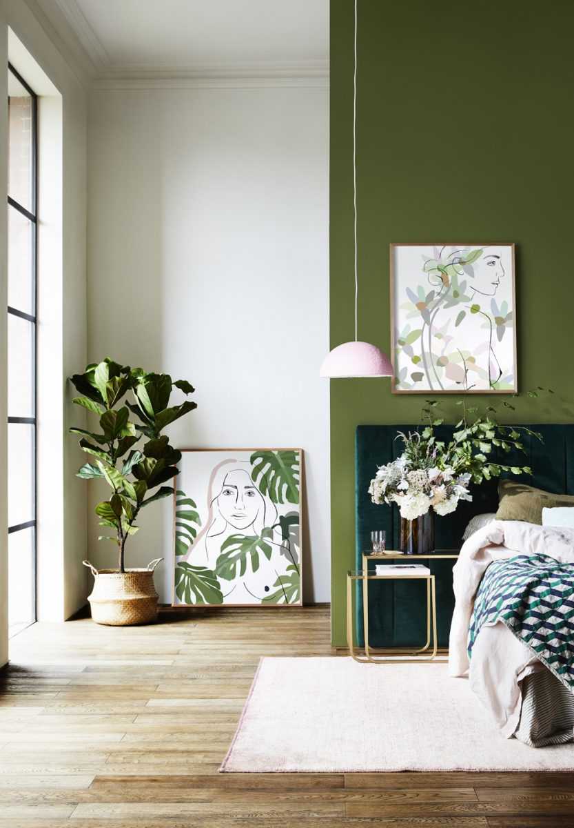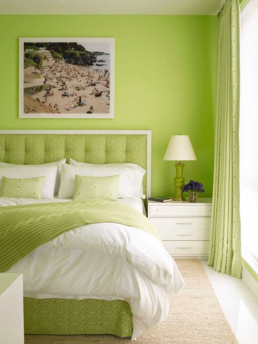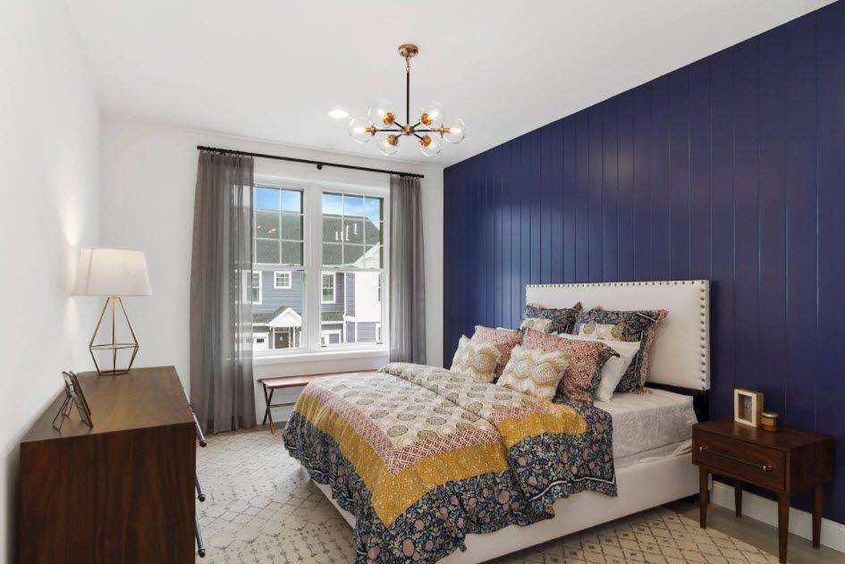 Акцент. Если вы хотите добавить спальне свежести, выберите центральную стену и выкрасите ее в яркий цвет. Этот прием часто используется дизайнерами.