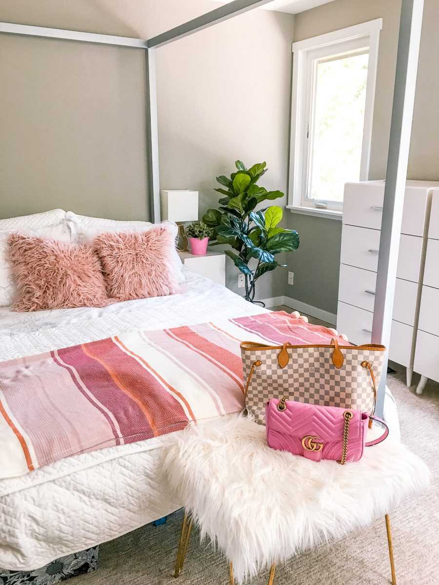 Спальня в серых тонах с декоративной накидкойИсточник blog.postel-deluxe.ru