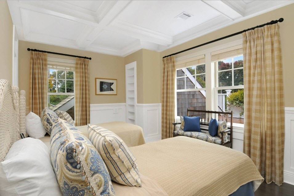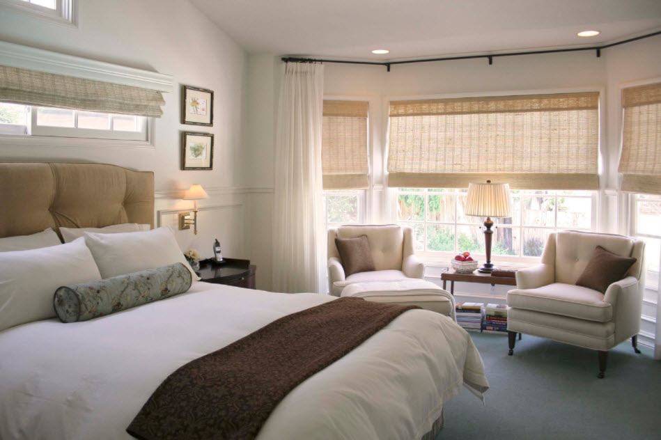 Сочетание бежевого и белого оттенка в просторной спальнеИсточник yandex.ru