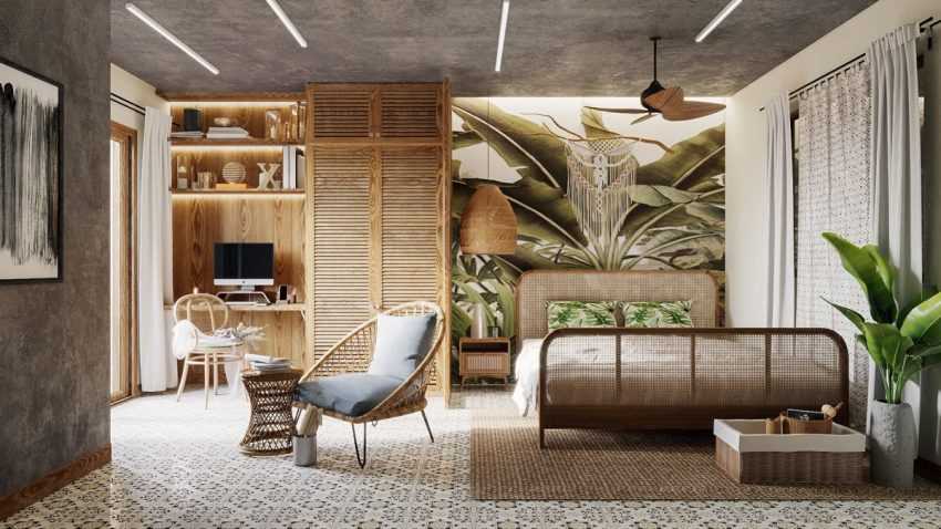 - применяются натуральные материалы не только для отделки, но и для изготовления мебели;