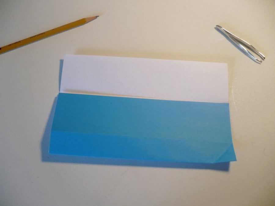 1 Согните лист офисной бумаги формата А4 по центральной линии (ориентация – вдоль) и еще раз сложите пополам.