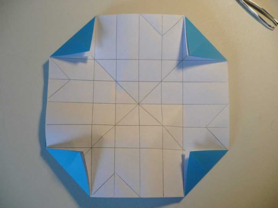 У полученной заготовки теперь следует перегнуть все четыре вершины до середины.
