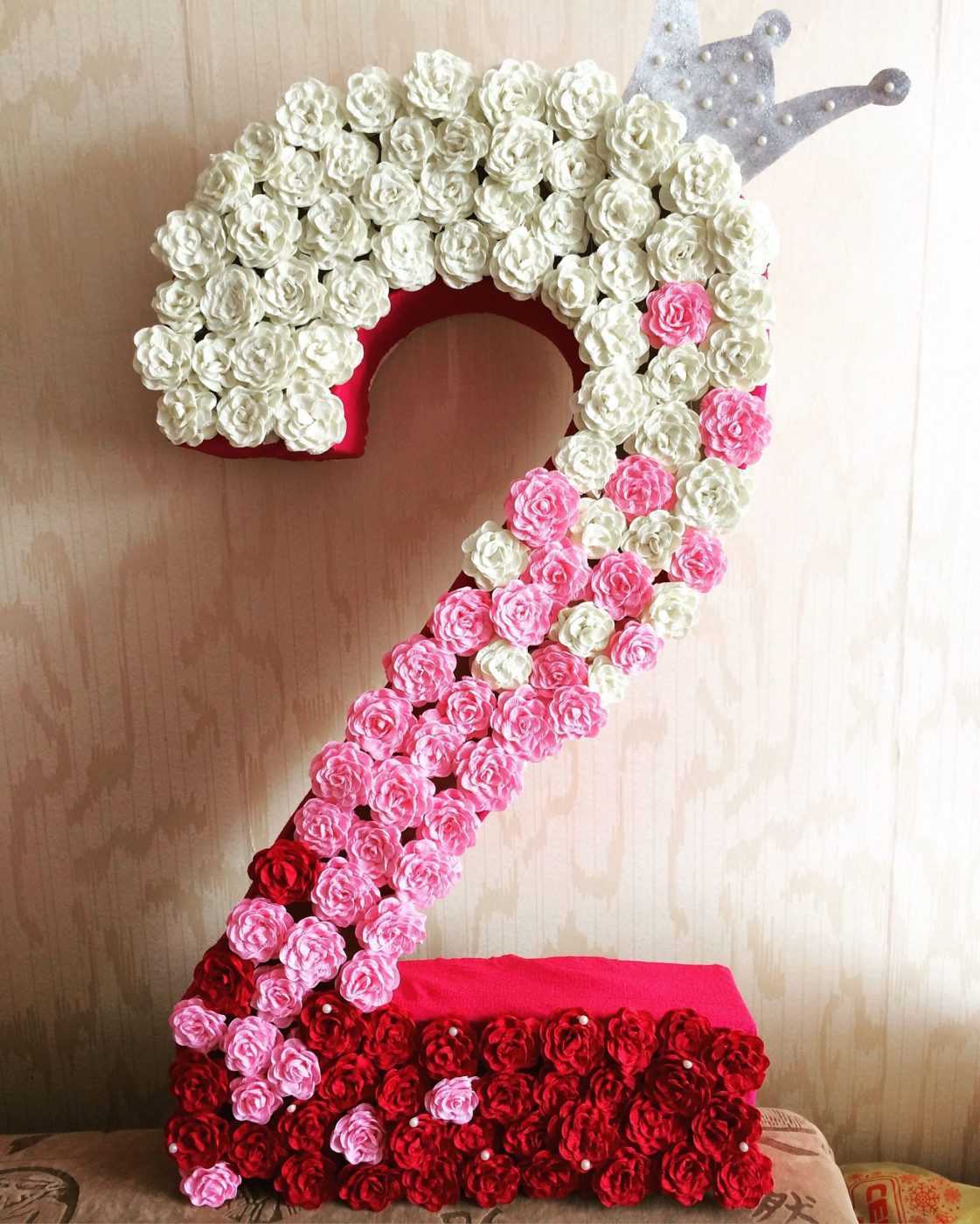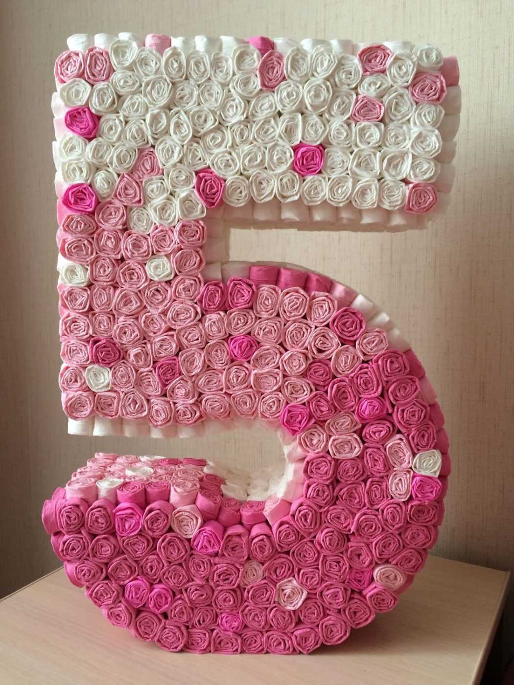 Объемные цифры из бумаги для начинающих можно выполнить двумя способами. Для первого понадобятся цветные бумажные салфетки, ножницы и нитки.
