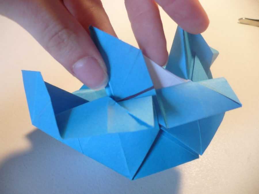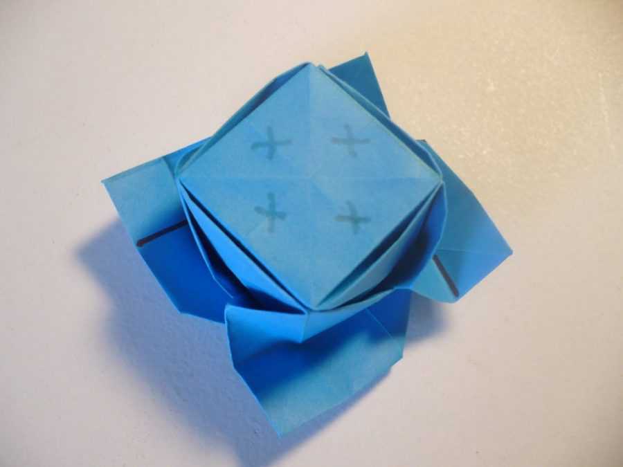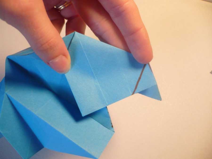 Опять поднимите боковые четыре угла к «скошенной» вершине.