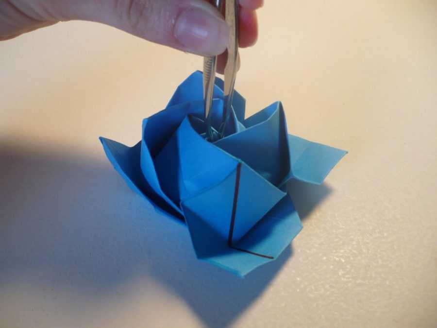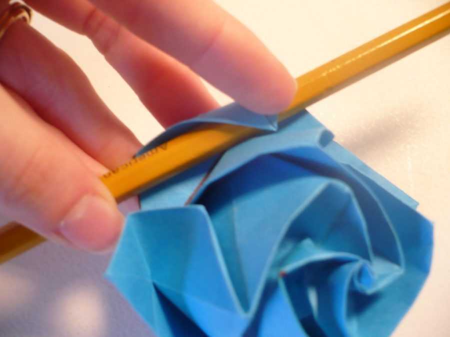 Слегка расправив будущую розу, необходимо вогнуть полученный загнутый уголок «внутрь».