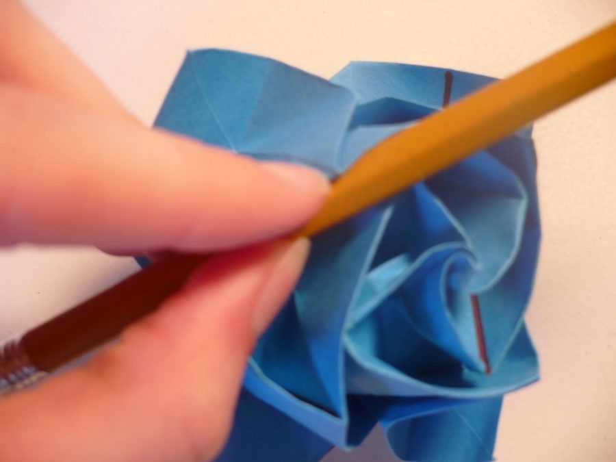 Для полного придания бутону формы цветка необходимо закрутить лепестки на кисточку или карандаш. Делается это простым способом накручивания и тщательного закрепления руками. Полученный бутон можно добавить дополнительными лепестками.