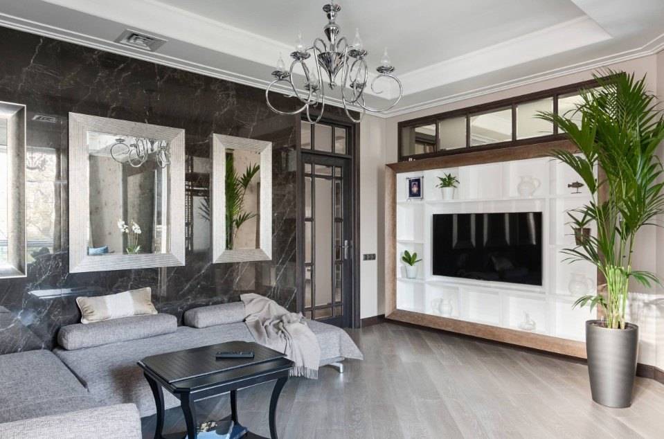 Современный интерьер классика или неоклассика. Стиль, который считается идеалом элегантности и красоты. Главные черты – сочетание, сдержанность и симметрия. Современный классический стиль в интерьере совмещает в себе традиции классицизма и античности с оглядкой на новейшие эстетические реалии. При оформлении жилого пространства используются современные отделочные материалы и технологические средства. Здесь предпочтение отдают светлым тонам, таким как бежевый, оттенки коричневого, серый, различные варианты белого цвета. При разработке дизайна считается популярным использовать лепнину и зеркала. Приветствуется минимальное количество мебели и элементов декора.