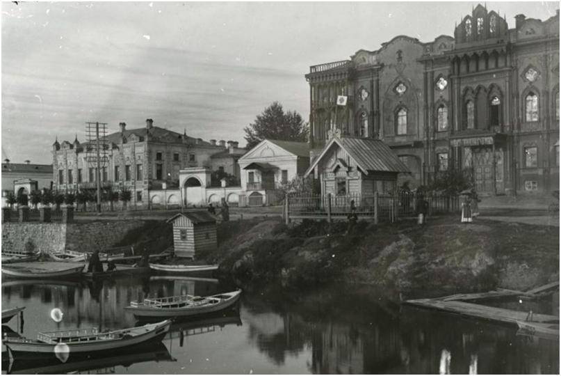 Мост с годами исчез, а вместо малоэтажной застройки появился Театр юного зрителя. |